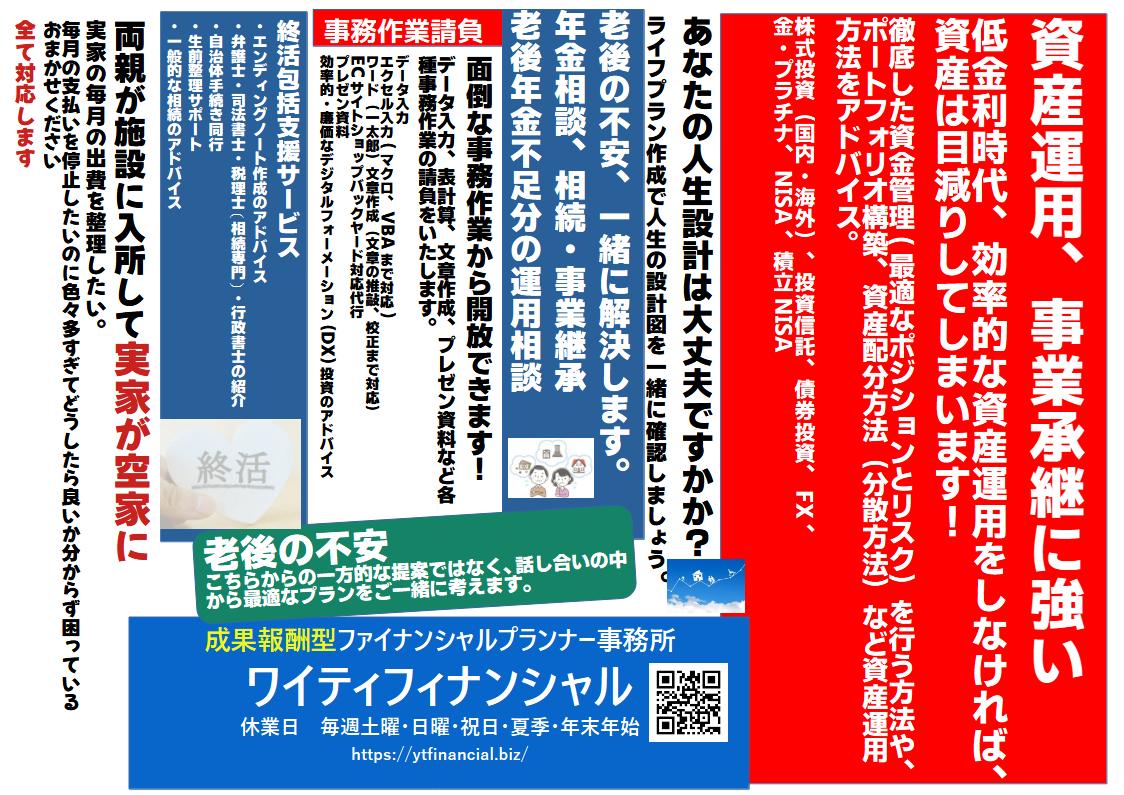 株式、投資信託、不動産投資、NISA,積立NISA、iDeCoなど、資産運用に関するご相談にお答えします。